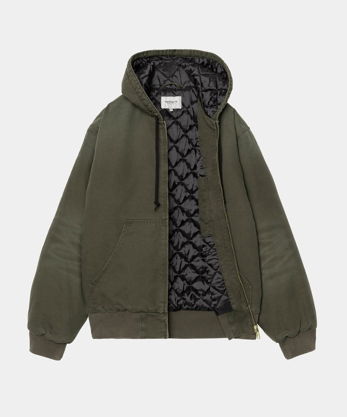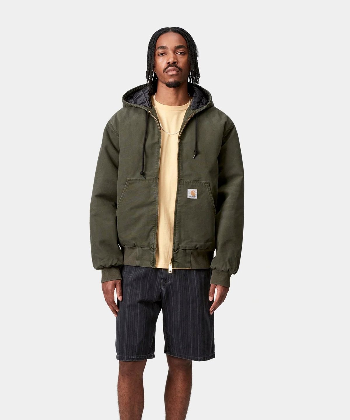 The OG Active Jacket is made of 12 oz organic cotton Dearborn Canvas. It is a heavyweight, insulating style cut in their original loose fit, and features a diamond-quilted lining, as well as a ribbed hem and cuffs. A kangaroo pocket, adjustable hood and zipped front fastening offer functional touches, while triple-stitch details provide extra durability.