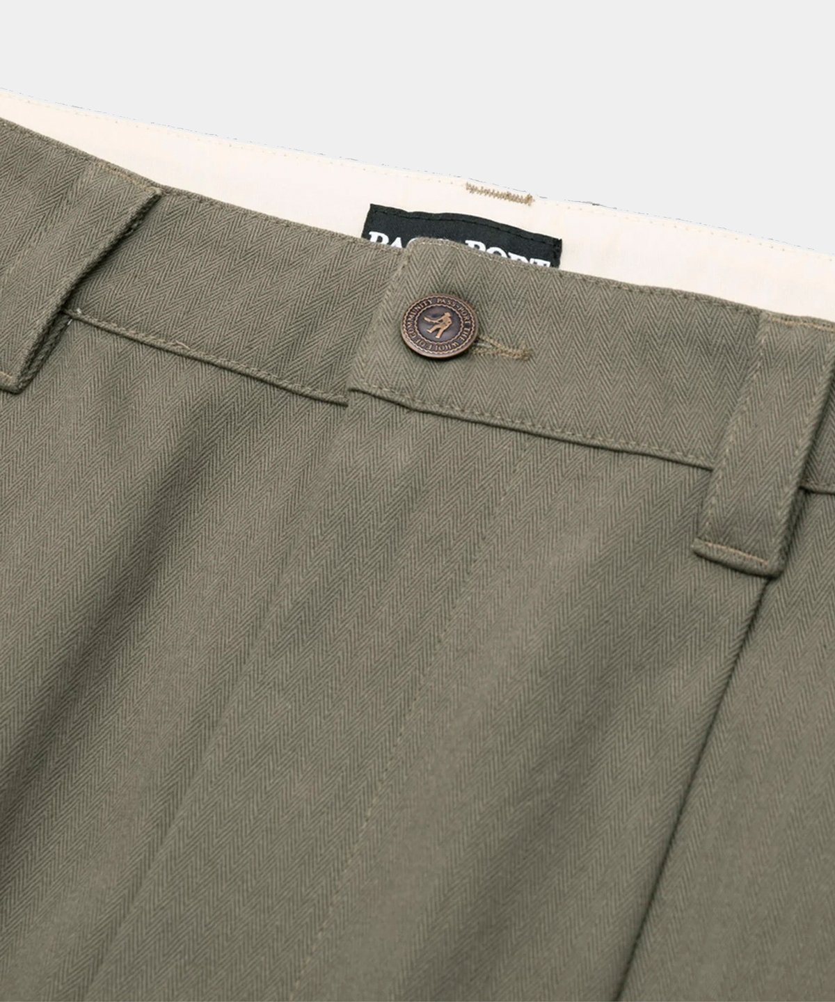 The Leagues Club trouser is made from 100% cotton herringbone and features double pleats on front and custom button, the perfect trouser to wear in all occasions.