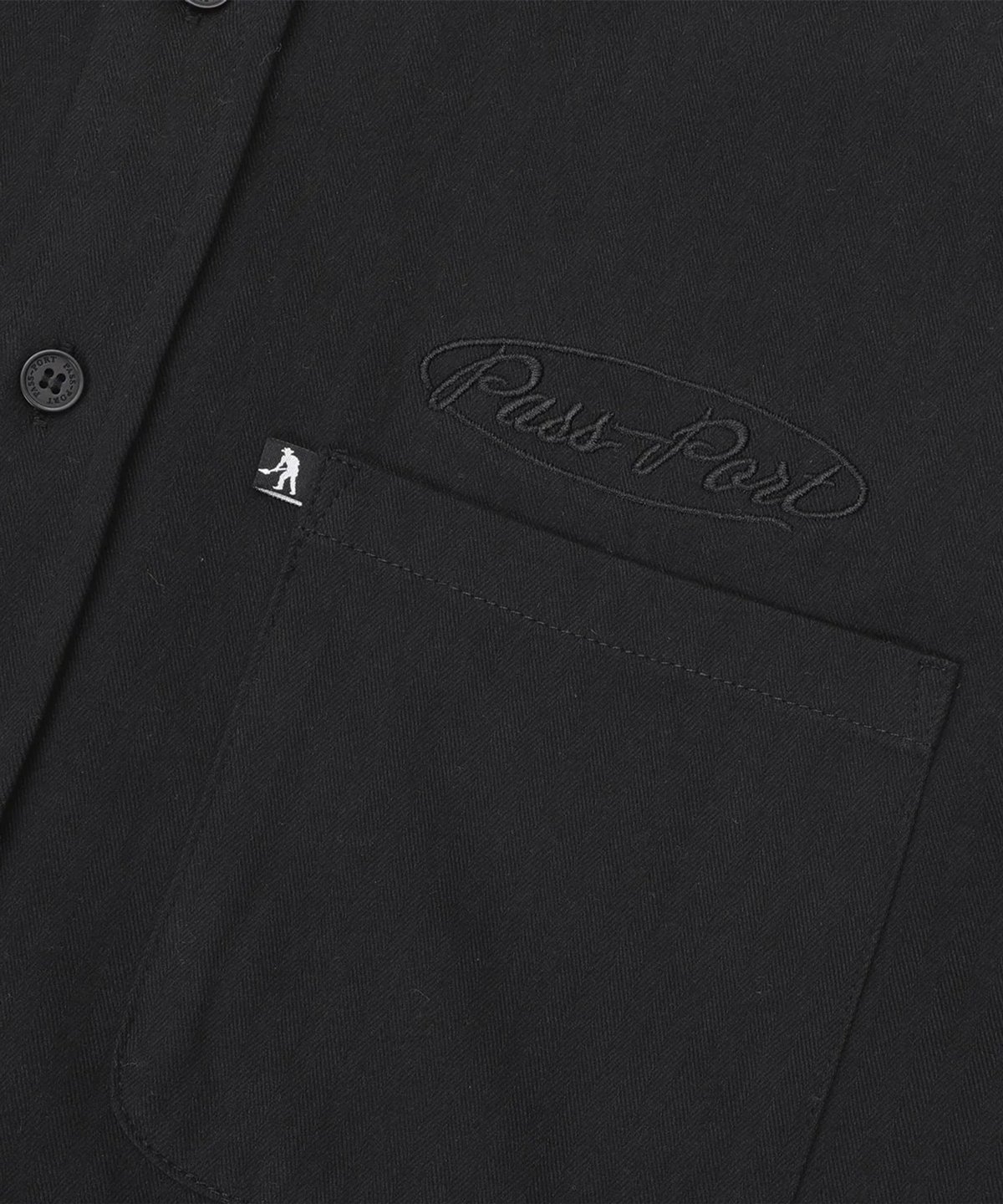 PASS~PORT_OVALIT HERRINGBONE SHORT SLEEVE SHIRT :::BLACK:::